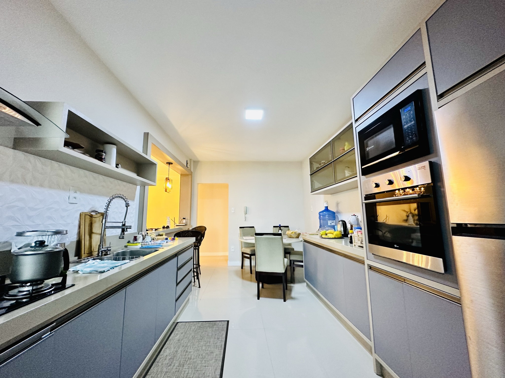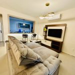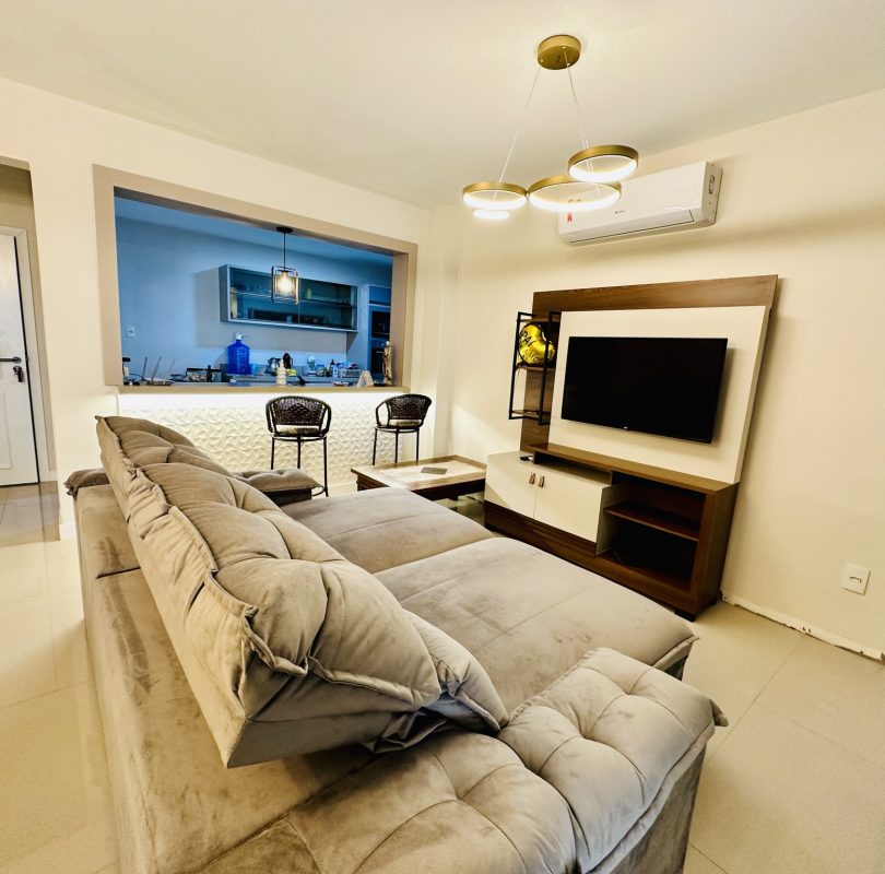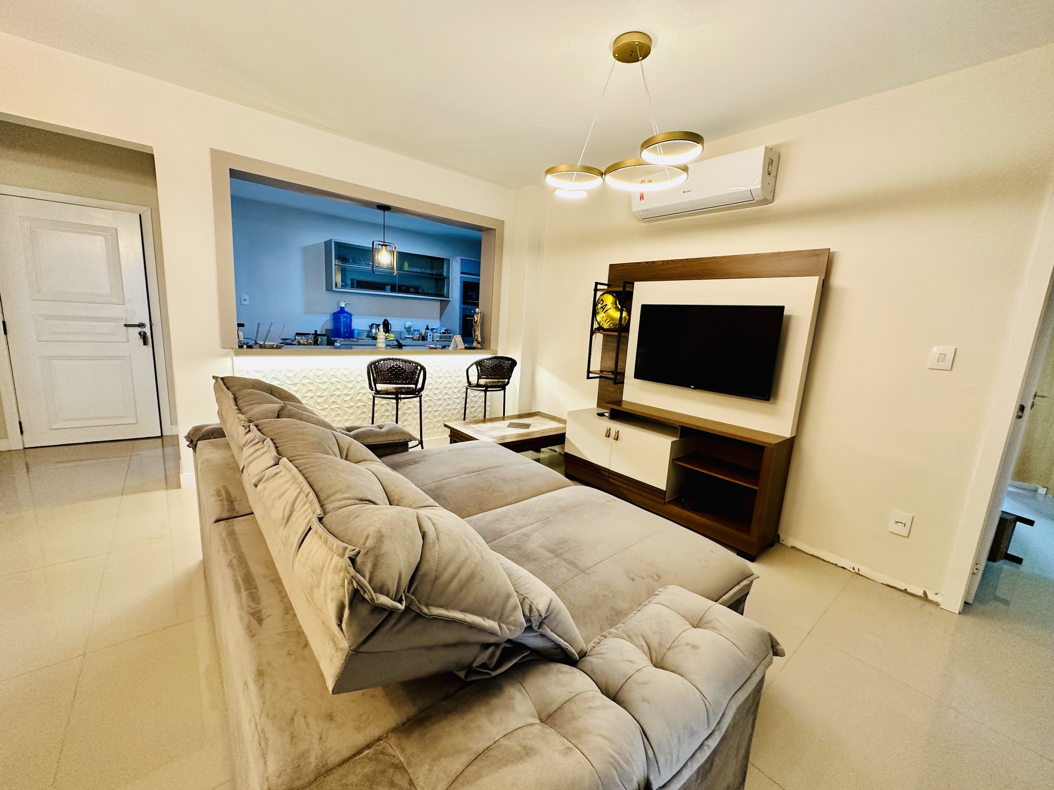 Sala, cozinha e sacada conjugadas em um amplo espaço